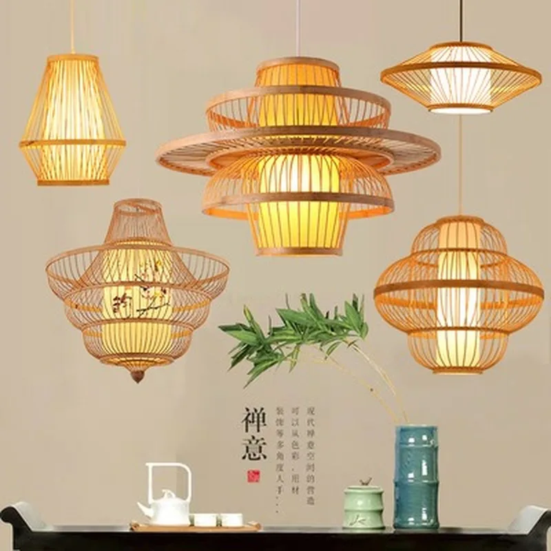 Special Offer Chinese Style Bamboo Weaving Bamboo Artwork Chandelier Zen Tea Room Restaurant Lantern Southeast Asia Creative Birdcage LED Lamp Discount (10%OFF) Today!
